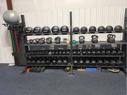 • Kettlebells (9lbs – 70lbs): Essential for dynamic movement and grip strength.