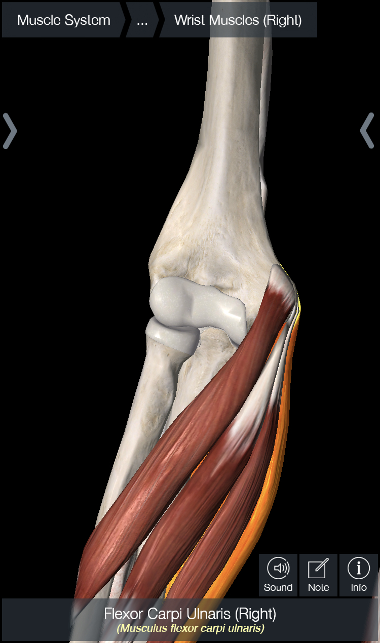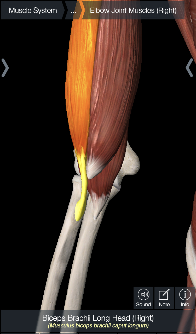 In the pictures below, you are looking at a picture of a right elbow from the front. In picture 1, I have highlighted the anterior band of the UCL; in picture 2, I have highlighted the biceps muscle; and in picture 3; I have highlighted the forearm flexor musculature.